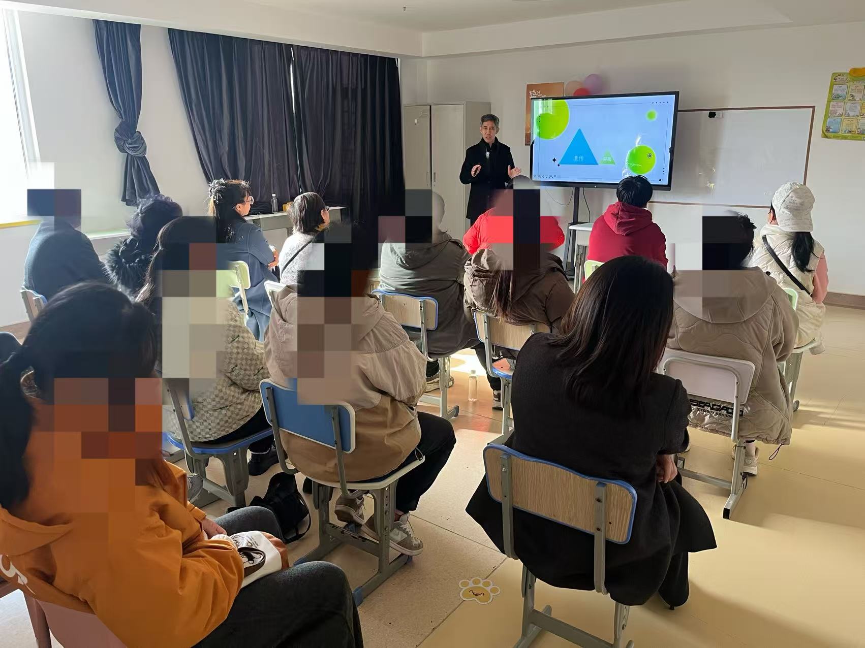 11月29日,教联体特聘专家,鲁东大学石新茂教授应邀为福山弘意儿童康复中心的家长开放日做了一场非常有意义的公益讲座,得到了参会领导、教职员工及家长的高度认可及好评。